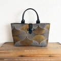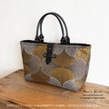 《フランス 大人 モード》おしゃれな ジャガード織 ゴールド 幾何学模様 黒 金 小柄 革 トート 手提げ バック