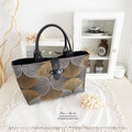 ⭐️《フランス 大人 モード》おしゃれな ジャガード織 ゴールド 幾何学模様 黒 金 小柄 革 トート 手提げ バックです♪