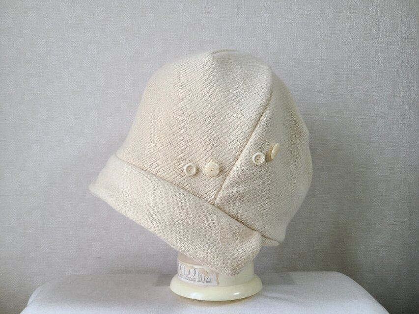 魅せる帽子☆飾りボタンが可愛い♪あったかウールニットのクロッシュ~オフホワイト