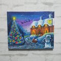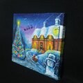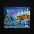 「Christmas」は、美しい夜空をバックに広がるクリスマスの風景を描いた心温まる油絵です。左側には華やかなクリスマスツリーがそびえ、その右側には愛らしい雪だるまとサンタが置いた扉にクリスマスプレゼントが描かれています。中心にはサンタクロースとトナカイのソリが描かれ、まるで夜空から舞い降りる雪とともに、夢のようなクリスマスの世界を表現しています。この作品は、見る人の心に温かさをもたらす特別な一枚です。
