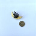 Tsuki to neko "月とふさふさ尻尾の猫さん" 手刺繍 月猫ブローチ