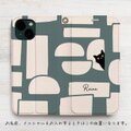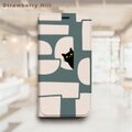 このケースは、幾何学模様に、キュートな黒猫がひょっこり顔を出す、まさに癒やしと個性を両立させたデザイン。