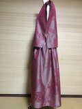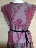 ありがとうございました。すてきなギフトもいただき感激です。サイズは通常SよりのMサイズの私には大きかったですがリボンをするとジャストサイズになりました。 大島のワンピース、すごく贅沢だと思います。 使用した大島のこと、紋様のことも教えていただき、着る楽しみが増えました。織った人がいて、着物を縫った人がいて、それを着た人もいたきものをさらに裁断しワンピースに仕上がった! すごいことだと思います。