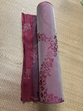 未使用の正絹の反物から仕立てました。ほんのり光沢のあるグレイッシュのピンク生地にワインレッドの花模様が優しく浮かぶ上品なセットアップです。