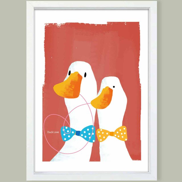 恋するアヒルたち ほのぼのインテリアポスター。