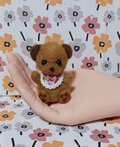 茶色の羊毛フェルト犬の大・目が大きく可愛いデザイン。