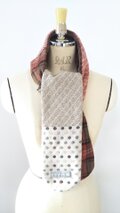 上質な尾州ウールなど茶色系の秋冬生地をパッチし、内側にはなめらか感触の編み込みフェイクボアを合わせました。シンプルな一回結びのほか、首回りにふた巻きし、両端のスナップボタンで留めることが出来ます。