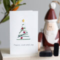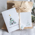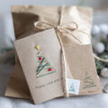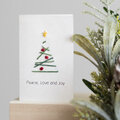 シンプルなクリスマスツリーの紙刺しゅうミニカード。言葉は出力です。