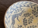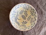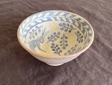 内側には手描きのうさぎと植物模様、ところどころに散りばめた黄色の星がアクセント。柔らかな染め付けの青とあたたかみのある土肌が、ほっと落ち着く雰囲気に仕上がっています。