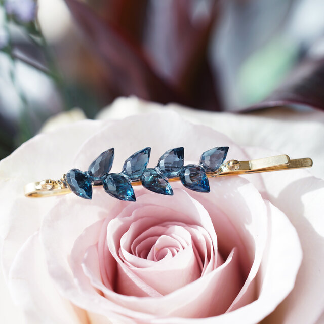 ロンドンブルートパーズを使ってヘアピンに仕立てました。