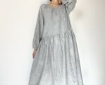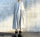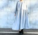 刺繍の小鳥とミモザ花柄*大人のナチュラル長袖ワンピース*国産綿100%あったかビエラ起毛*ポケット付*アイスグレー