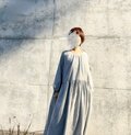 国産コットン100%◎ふんわりダブルガーゼ*シンプル無地の長袖ワンピース*フリーサイズ*ポケット付*ダークネイビーリピーターです。 ワンピースだけど着替えが楽々で、着心地よいです。 中にタートルを着用して重ね着が楽しめますね。