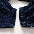当時、農作業の野良着として一般家庭で一枚ずつ丁寧に縫い上げられた、手縫いのハンドメイド品になります。天然藍の深い色合いと蚊絣の繊細な文様、長い年月を経た古布ならではの柔らかな質感が魅力です。
