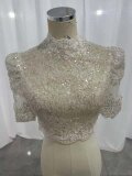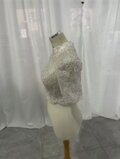 実例写真!ボレロ 半袖 キラキラ光る刺繍 くるみボタン キラキラスパンコール 華やか 結婚式