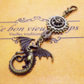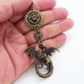 アンティークゴールド ドラゴンと歯車のスチームパンク風キーホルダー ゴシック バッグチャーム 金具変更可