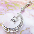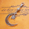 月夜に舞う蝶の夢。アンティークシルバーの三日月と蝶キーホルダー