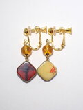 2色の琥珀に蒔絵をしたイヤリングです。