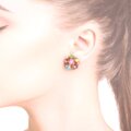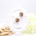 【フランス買付】ヴィンテージ マルチカラーストーン×フラワーモチーフイヤリング*Retro Jewel1960s-1970s