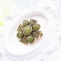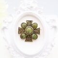 【フランス買付】ヴィンテージ グリーンストーン×クロスモチーフブローチ*Antique Gold Design1970s