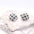 【フランス買付】ディープブルー × クリアストーン モザイクドーム イヤリング*Art Deco Mood1970s-1980s
