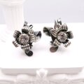 アンティークシルバートーンのメタルに、大粒のクリアクリスタルを中央にあしらい、花のように広がる造形が印象的です。