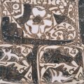 幾何学模様の中に、何種類かの魚のモチーフが描かれています。