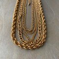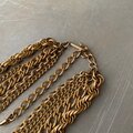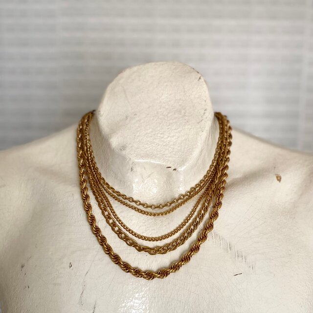 クラシカルな5連チェーンのUSAヴィンテージネックレス。ボリューム感のあるデザインで留め具はヴィンテージならではのフックタイプになっています。古びたメタルの色味も魅力的。存在感がありスタイリングにお洒落な雰囲気をプラスしてくれます。