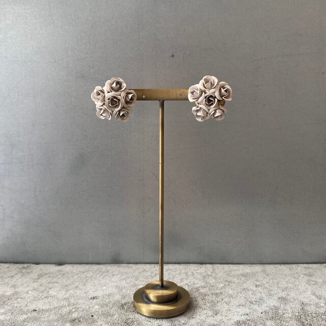白い薔薇の花束のようなレトロ可愛いUSAヴィンテージピアス。メタルを加工して作られた繊細なフラワーが魅力的です。