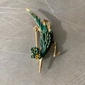 Vintage 70s-80s USA retro green enamel road runner bird brooch
