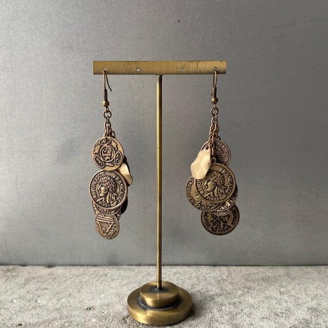 コインチャームがジャラジャラと揺れ動く個性的なデザインのUSAヴィンテージピアス。古びたメタルの色味も魅力的です。存在感がありコーディネートにお洒落な雰囲気をプラスしてくれます。