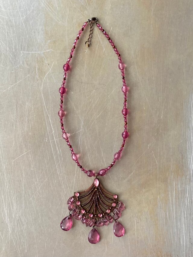 クラシカルな雰囲気のUSAヴィンテージネックレス。いくつものビジューが繊細に揺らめく大きなチャームが魅力的なデザイン。存在感がありお顔まわりを華やかに彩ってくれます。