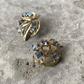 ボタニカル風のメタルにライトブルーのビジューがきらめくUSAヴィンテージイヤリング。クラシカルな雰囲気あふれるデザインが素敵です。存在感がありお顔周りを華やかな印象にしてくれます。