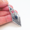 揺れるたびにキラキラと輝くメタルパーツと深みのあるブルーのコントラストが耳元を印象的に彩ります