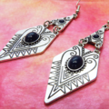 ヴィンテージ調トライアングルな幾何学的メタルタッセルピアス ゴシック アンティーク サージカル可