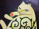 タンニンなめしの革にカービングと染色をして 硬質ウレタンに