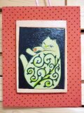 包む様に貼り 手作りの額にはめてあります 取り外しができますので 別の絵を入れて楽しむこともできます ただしサムホールのみ