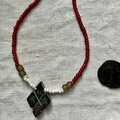 トップは蝋石にエチオピアのコプトクロスの形取って刻んだ珍しいモチーフビーズです。ビーズの整理をしていたらもうないと思っていたのが出てきました。