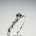 深いブルーグリーンのトルマリンを、唐草の細身のリングにセットしました。
