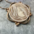 "M'Lady" とタイトルのついた、髪の長いレディが象られたペンダントネックレス。