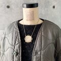 ミドル丈のネックレスに大きめのチャームで、存在感を強調します。