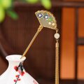 扇子の簪 - 光沢のある七宝焼きの色合いが上品さを際立たせ K201