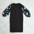 【丈調整できる✨】立体感ある花柄ジャガード シアースリーブ 異素材バルーン袖 ワンピース ブラック 0769