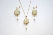 ドロップパールを一粒吊るして、高級感に可憐さを添えたアクセサリーに仕上げました。