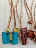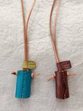 メガネホルダーネックレス セルリアンブルー 濃いブラウン オイルワックスレザー