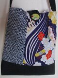 中袋には、正絹の銘仙の着物を使い、中ポケットを1つ付けています。