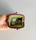 タンニン鞣しの革で制作した コロンっとかわいい形の「BOX型ガマグチ」