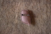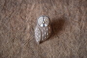 豚革に綿を詰めたカラフトフクロウのブローチです。