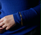 マーユと呼ばれるオーバル型のモチーフは、インフィニティのような形のパーツで8個繋げられています。シックなゴールドカラーで少しカーブして腕に沿うようなデザインです。