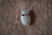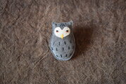 豚革に綿を詰めたアフリカオオコノハズクのブローチです。