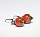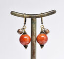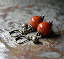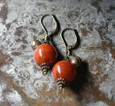 珊瑚色のまん丸なアフリカンアンバーと民族鈴を繋いだピアスです。